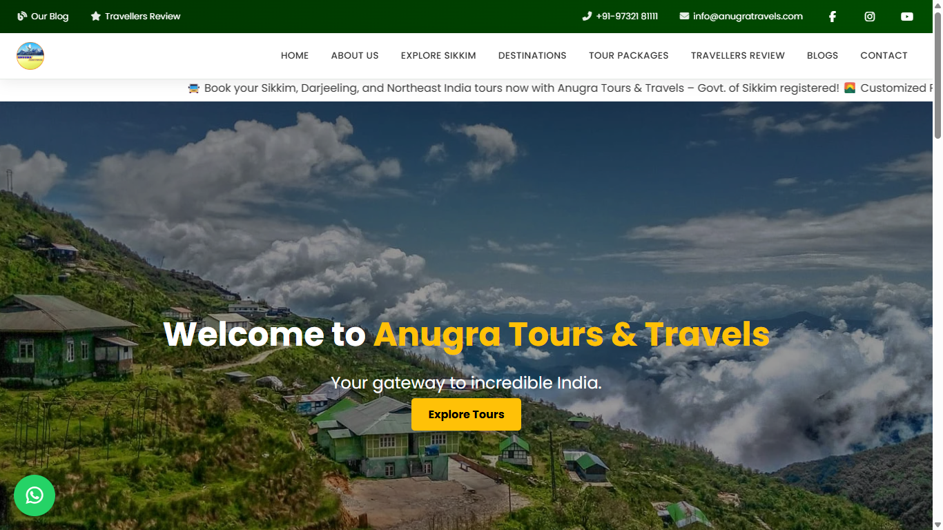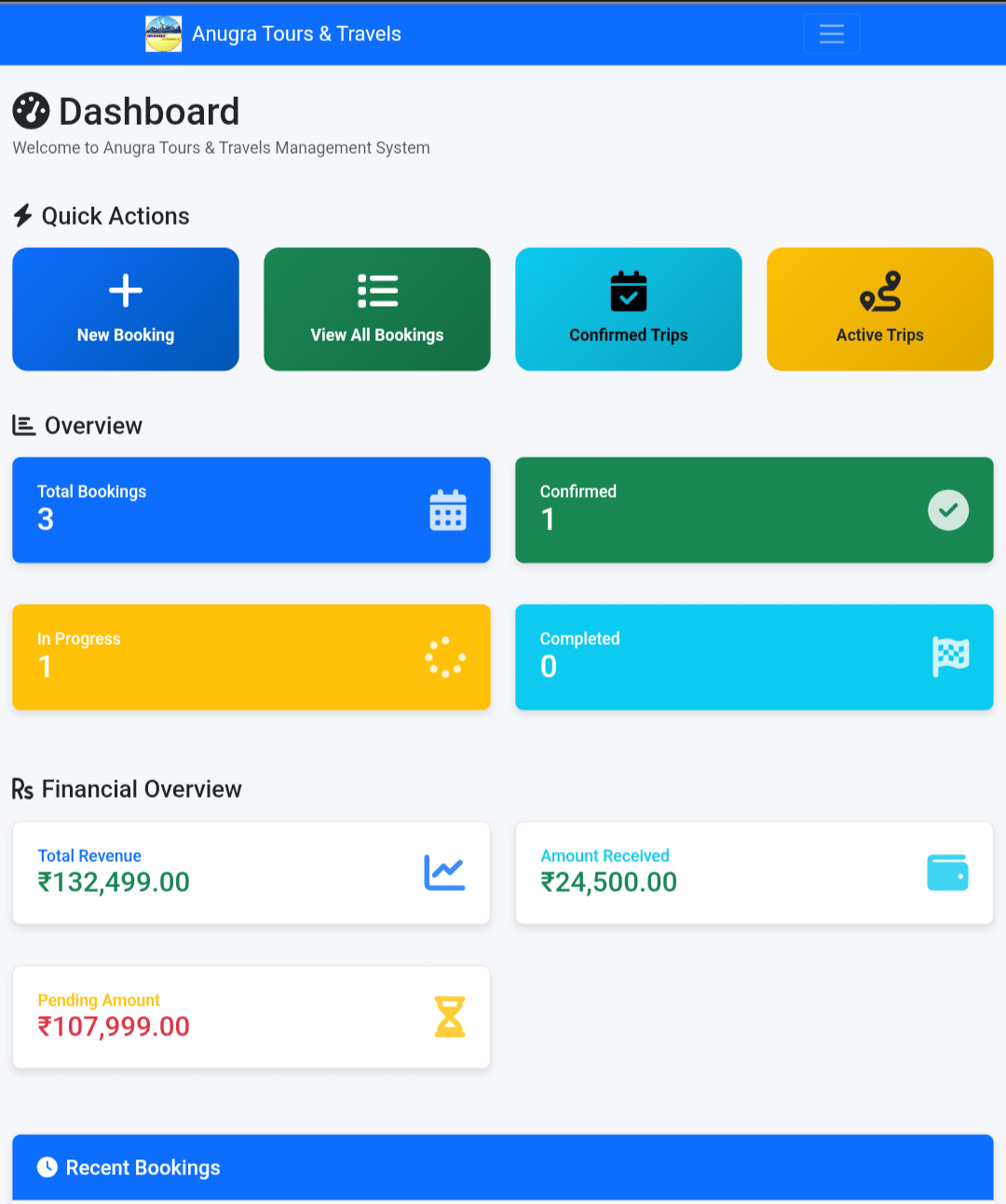 Built the secure backend and admin-only portal for Anugra Travels. This Travel Management System is used to manage all website content, customer inquiries, bookings, and tour logistics.