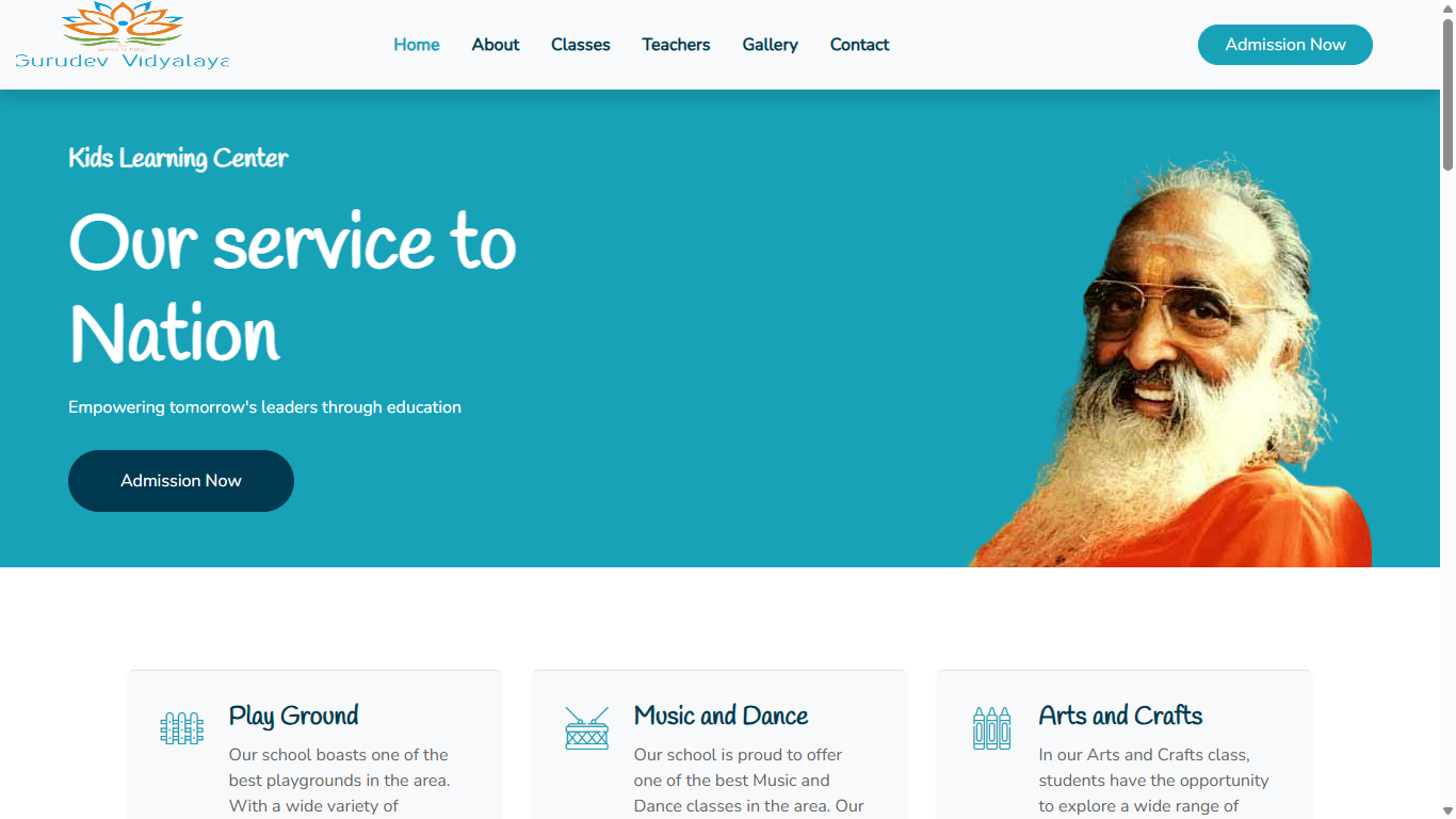 Developed a static informational website for Gurudev Vidyalaya. The site showcases the school's facilities, classes, and teachers, providing key information for parents and students.